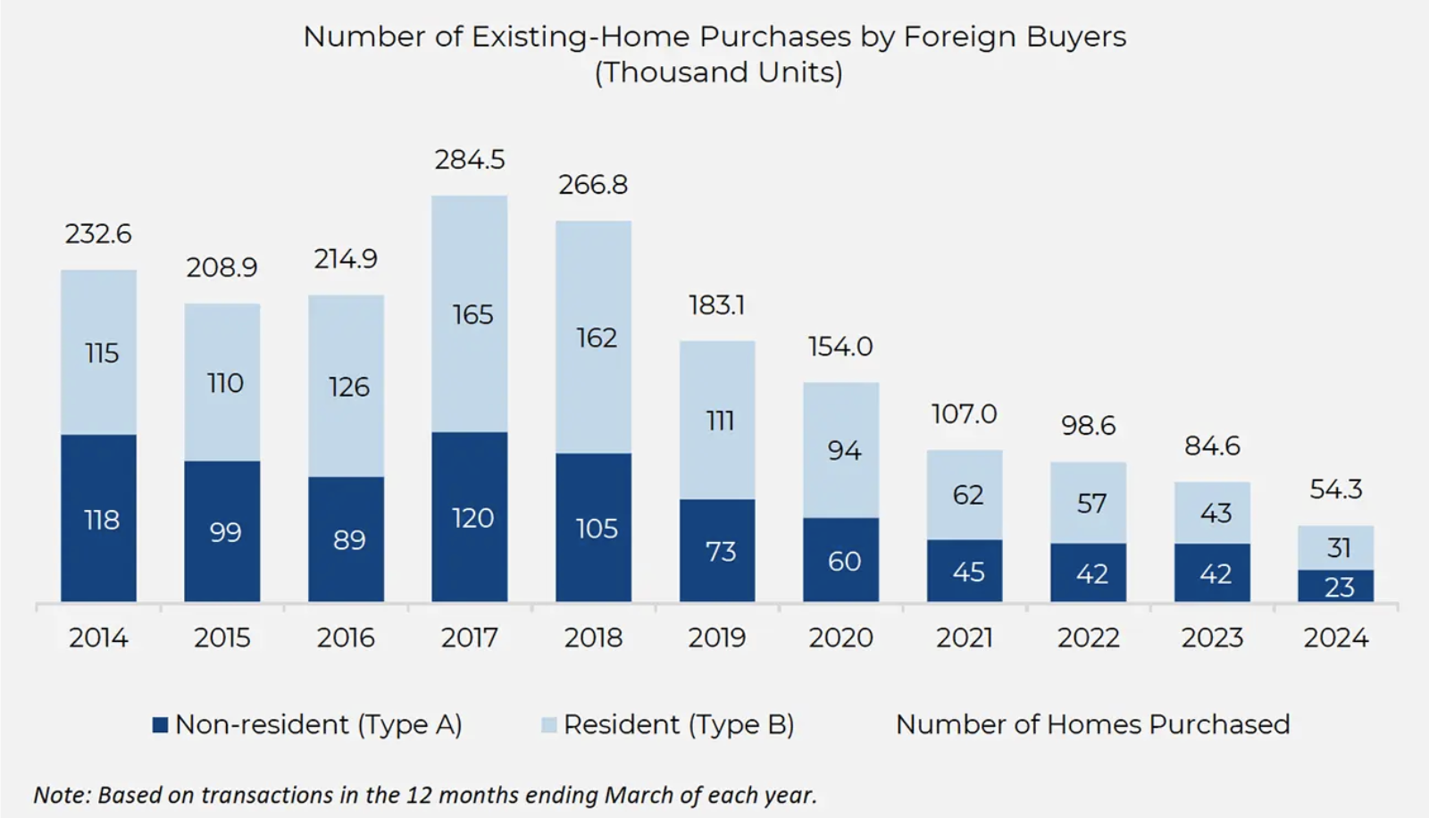 In this report, the number of foreign buyers and the number of properties purchased are used interchangeably, assuming that one foreign buyer purchased one property.