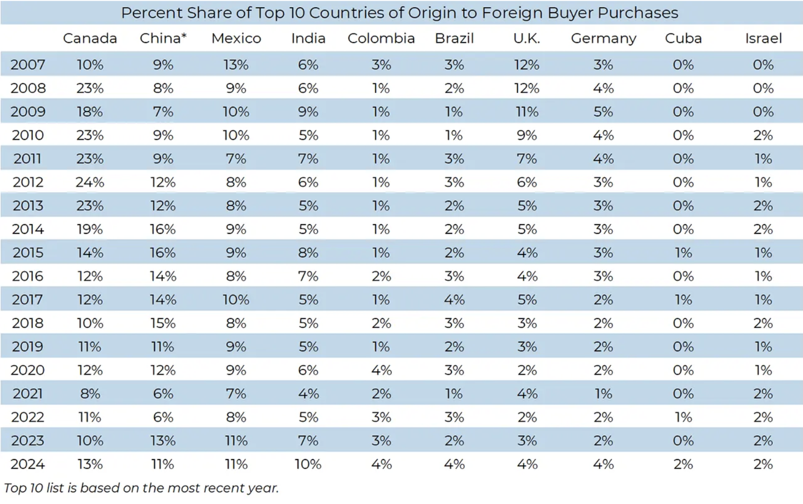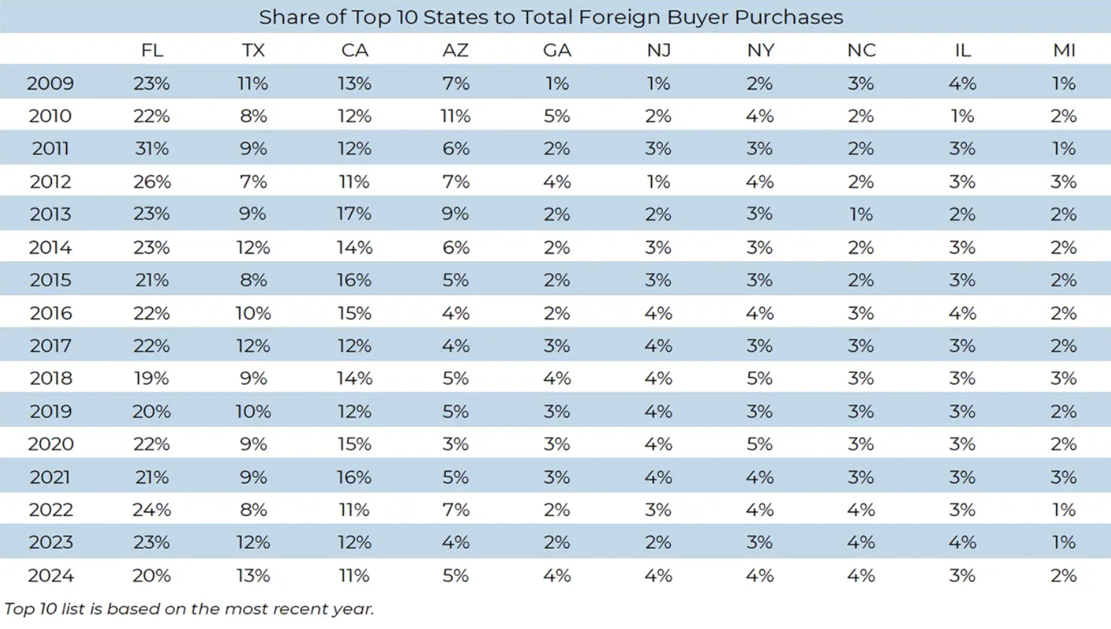 Since 2009, the National Association of REALTORS® (NAR) has conducted an annual survey of its members to measure the volume of U.S. residential real estate transactions with international clients, gather information on the origin, destination, and buying preferences of international clients, and identify the challenges and opportunities faced by REALTORS® in serving foreign clients.